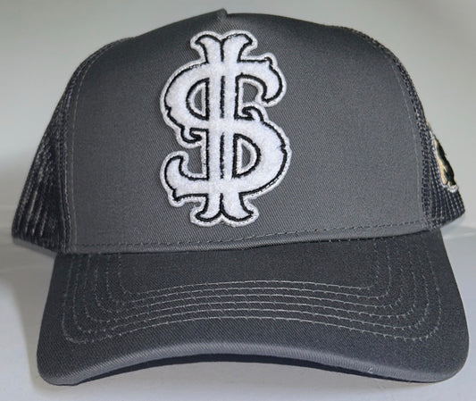 TRUCKER HATS WITH ROUND DOUBLE $ PATCH